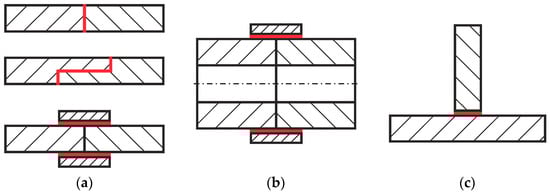 Basic types of adhesive joints: (a) joints used for plates; (b) pipe joint; (c) angle joint.