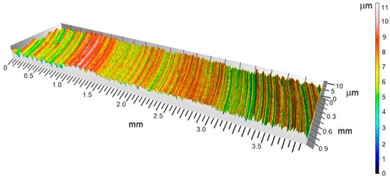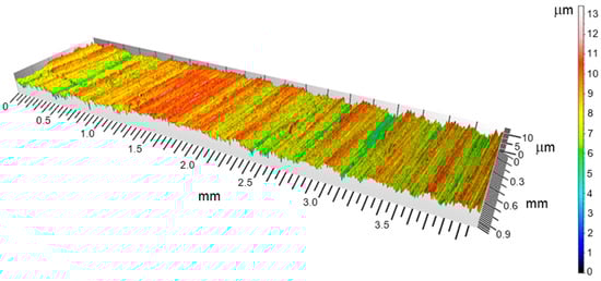After machining, all surfaces were cleaned using an ultrasonic cleaner with acetone. This removed contaminants from the surfaces and, in particular, residues of cutting fluids that had been used in previous machining operations. The next step was to measure the surface texture of the specimens, an example of which is shown in Figure 5, Figure 6 and Figure 7.