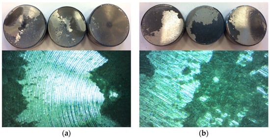 The strength values obtained clearly indicate that, for both types of adhesive, the most favourable state of the surface texture is the state after the grinding treatment. However, in the case of a low-viscosity adhesive (i.e., T2), the strength of the bond with the specimens after polishing is higher than the strength of the adhesive joint in which the surfaces of the specimens were only turned. The opposite situation is recorded for a high-viscosity adhesive (i.e., T1), for which the mechanical anchoring effect in the irregularities of well-wettable surfaces is stronger than the adhesive bonding effect of the adhesive molecules to the smooth metal surface (see Figure 11).