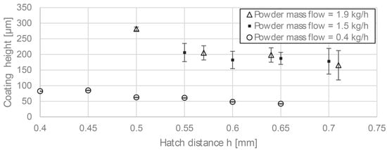 Resulting coating thicknesses by variation in the hatching distance h. Applied parameter sets are provided in Table 3.