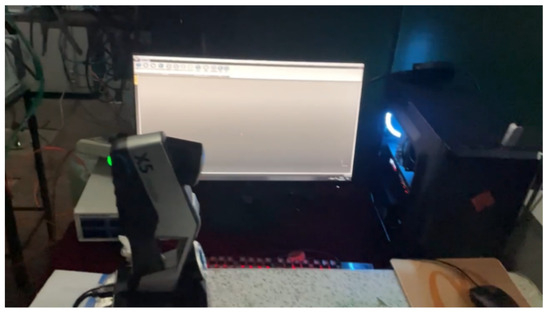 The laser measurement equipment utilized in this research was the FreeScan X5 multifunctional handheld 3D scanner manufactured by SHINNING 3D (Hangzhou, China). This device is capable of achieving a scanning speed of up to 350,000 points/s with a measurement accuracy of 0.030 mm. The 3D scanner is utilized to capture the external 3D structure of ice formations, acquiring point cloud data of the ice shapes. The scanning measurement system is depicted in Figure 3, produced through 3D modeling and virtual reconstruction. To ensure a high resolution, a slow movement approach is adopted during scanning, with repeated scans of the same area to capture complete regional features.