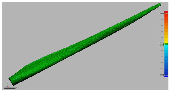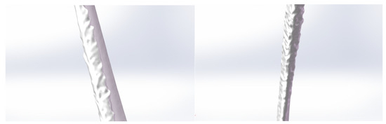 - After analyzing the point cloud data, different model reconstruction surfaces and ice shape reconstruction surfaces are produced to create solid structures. Figure 6 illustrates a color map representing volumetric deviations between the processed model and the initial scan data, indicating that the majority of locations in the processed model adhere to the specified accuracy threshold of 0.03 mm. Figure 7 depicts detailed perspectives of the ice-covered blade entity formed during post-processing.