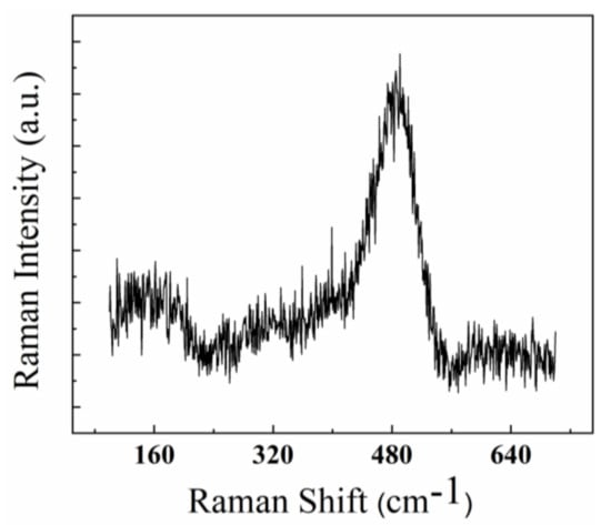 Raman spectra of the a-Si/a-SiOxNy:H multilayer film with 4 nm a-Si:H layer and 4 nm a-SiOxNy:H layer when [O/N] ratio is 0.2.