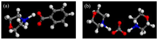 Optimization of molecular geometry of two morpholine salt volatile corrosion inhibitors, (a) morpholine benzoate and (b) morpholine carbonate.