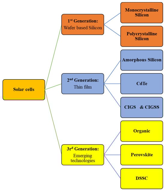 Electricity stands out as one of the most extensively utilized forms of energy, derived from a diverse range of sources [1,2]. The choice of energy source for electricity generation necessitates abundance and cleanliness to meet escalating demands while addressing environmental considerations. Among the renewable and boundless sources available, solar energy emerges as a prime contender for electrical energy production [3]. Photovoltaics, a technology centered around semiconductors, transforms solar energy into electricity. Despite ongoing advancements in the materials employed for photovoltaic technology, the overarching objective persists in developing efficient technology at a cost-effective scale. Semiconductors designated for photovoltaic applications are typically classified into three types, delineated in Figure 1 [4].