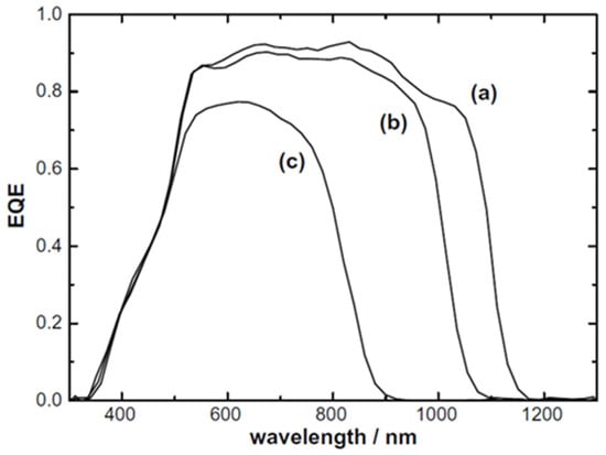 External quantum efficiency of CIGS solar cells with different Ga/(Ga + In) values of (a) 0.18, (b) 0.34, and (c) 0.78 [29] (copyright 2010, Elsevier).
