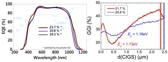 External quantum efficiency (EQE) and GGI grading of the 21.7% and the 20.8% devices [81] (copyright 2015, Wiley-VCH Verlag).