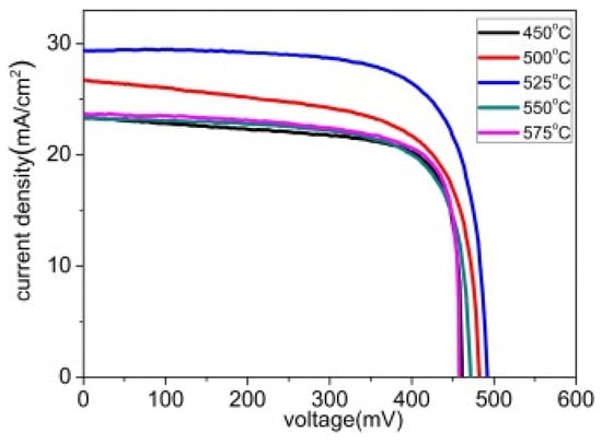 Results on a device with the best performance for Cu(In1−xGax)Se2 (x = 0.3) selenized at 450 °C and 575 °C [92] (copyright 2012, Elsevier Ltd.).