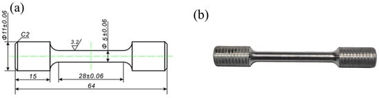 The tensile mechanical properties of the designed soluble aluminum alloy material were experimentally evaluated at room temperature. Initially, samples were obtained from the casting using an electric discharge CNC wire cutting machine DK7725E (ZHCF CNC Technology Co., Ltd., Suzhou, China). Subsequently, the extracted samples were meticulously processed into dumbbell-shaped tensile test specimens using precision CNC machine tools as depicted in Figure 1a.