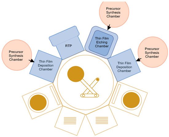 The acceptance of cluster-tool manufacturing methodology has been predicated on the requirement for sequential automated processes that require strict control of processing parameters, including exposure time, pressure, temperature, and other parameters. For example, cluster tools are typically formed at multiple wafer processing stations placed around a central, automated handling unit with fixed inputs of precursors which are supplied to each processing station, such as a deposition chamber. The inputs are typically stable reservoirs of gases or volatile materials. A wafer processed in a first deposition chamber then leaves the first deposition chamber within a specified time limit and moves, typically under in situ, high vacuum conditions, to another deposition chamber within the cluster tool without a vacuum break.