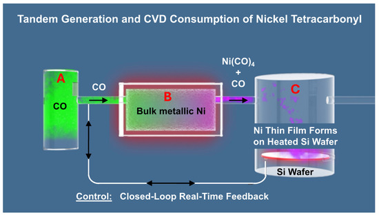 One set of experiments involves the tandem generation and CVD consumption of the toxic source nickel tetracarbonyl (Ni(CO)