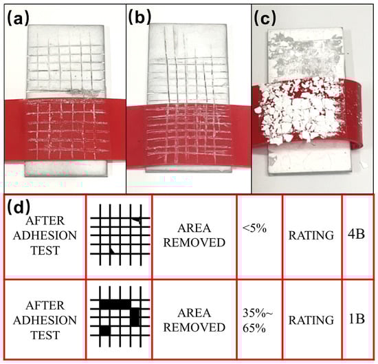 - ASTM D3359-23; Standard Test Methods for Rating Adhesion by Tape Test. ASTM: West Conshohocken, PA, USA, 2023. [CrossRef]