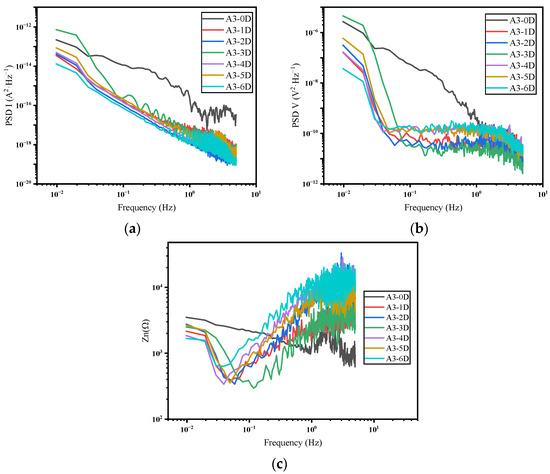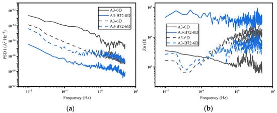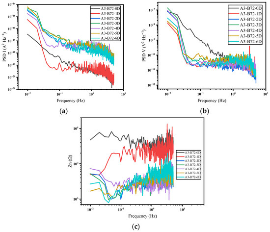 - In the frequency domain analysis, the current PSD can reflect the distribution of the power of the current density at different frequencies, which in turn reflects the corrosion rate of the system. Furthermore, the noise impedance in the low-frequency band and the impedance modulus can match well.