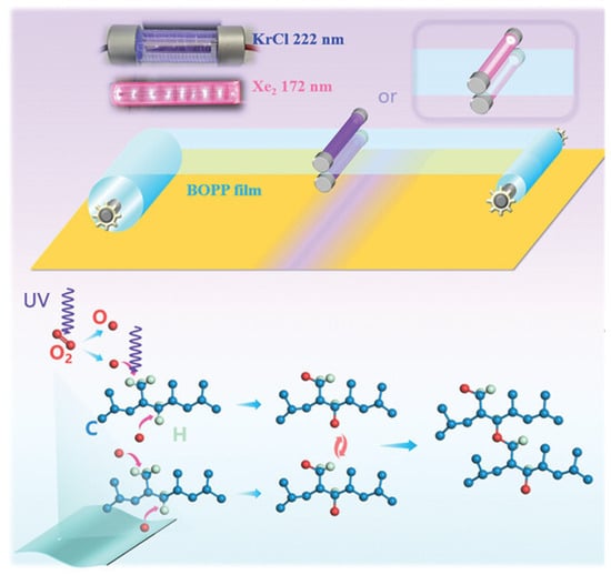 - Huang, B.; Yu, J.; Dong, J.; Zhou, Y.; Zhai, L.; Dou, L.; Wu, C.; Liang, X.; Zhang, C.; Ostrikov, K.; et al. Improving Charge Storage of Biaxially-Oriented Polypropylene under Extreme Electric Fields by Excimer UV Irradiation. Adv. Mater. 2024, 36, 2311713. [Google Scholar] [CrossRef]