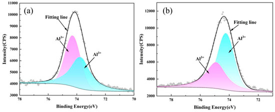 Al element XPS fine spectrum in the passivation film: (a) without ultrasonic vibration; (b) with the ultrasound amplitude of 8.0 μm.