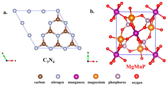 DFT theoretical calculation models of C3N4 (a) and MgMnP (b).