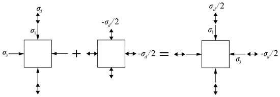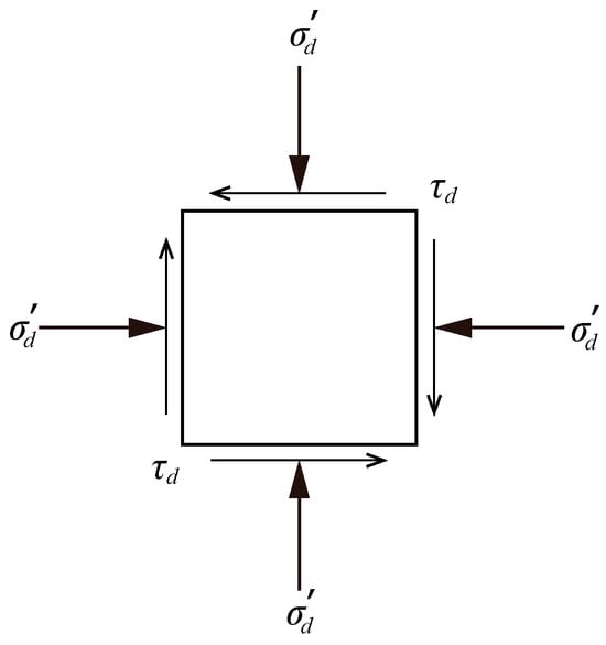 To date, the predominant method for investigating the stress state of soil units subjected to dynamic loading is the soil unit test, for example, the unidirectional and bidirectional undrained cyclic triaxial tests. These tests utilize the shear stress on the 45° surface of the soil unit to replicate the dynamic shear stress experienced during an earthquake (Figure 3). The shear stress states for both the unidirectional and bidirectional dynamic triaxial tests are illustrated in Figure 3. Following the completion of soil unit consolidation, a dynamic load of σd/2 is applied in both the x and y directions, resulting in the generation of shear stress of σd/2 on the 45° surface of the soil unit (Figure 3). In the unidirectional cyclic triaxial test, the dynamic load σd/2 is applied solely in the y direction, leading to the generation of both shear stress and spherical stress of σd/2 on the 45° surface of the soil unit, as depicted in Figure 3. It is important to note that the pore water pressure within the soil unit is influenced only by the consolidation pressure and dynamic shear stress; the spherical stress does not contribute to the generation of pore water pressure. However, it does impact the fluctuations of pore water pressure under dynamic loading conditions. Consequently, the bidirectional dynamic triaxial test is more effective in capturing the stress state of the soil unit under dynamic loading (Figure 4). This paper applied the bidirectional cyclic triaxial numerical test to investigate the stress state of the soil unit and established a pore water pressure model based on numerical simulations.