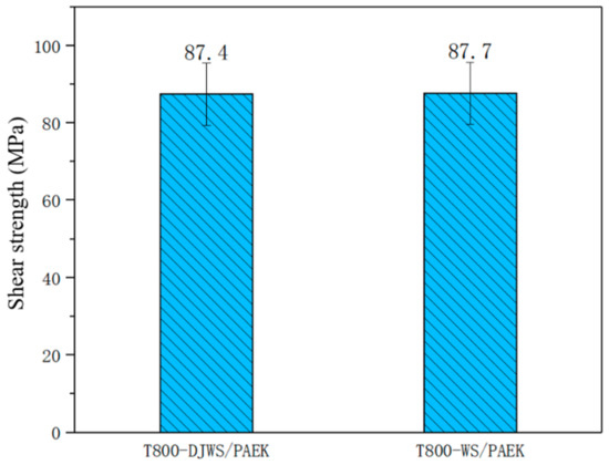Shear strength test results for T800-DJWS/PAEK and T800-WS/PAEK.