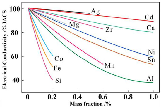 Effect of alloying elements on the electrical conductivity of copper alloys [11].