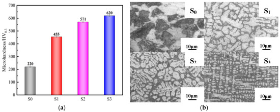 Surface microhardness and metallograph of substrate. (a) Surface microhardness; (b) metallograph.