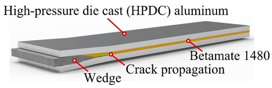 The HPDC aluminum AlSi10MnMg sample with Betamate 1480 epoxy adhesive for wedge test.