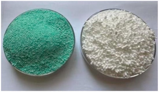 The SBS-T modifier and conventional SBS modifier used in this study were supplied by Guolu Gaoke Engineering Technology Research Institute Co., Ltd. (No. 30 College Rd., Haidian District, Beijing, China), China. Figure 1 presents their morphological characteristics, while Table 2 summarizes their technical specifications.
