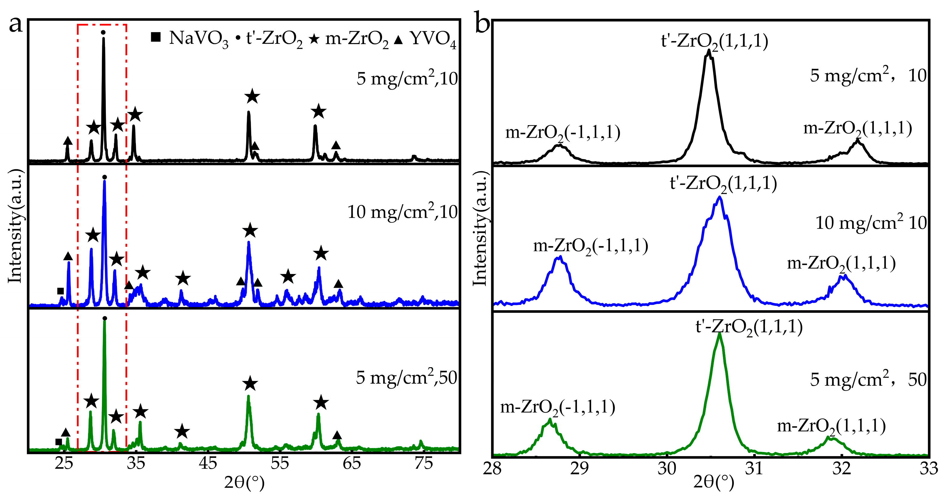 Figure 7a, which includes the main peak of tetragonal ZrO