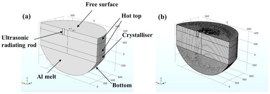 - Hu, R.; Jiang, R.; Li, R.; Zhou, H. Numerical Simulation and Casting Experiments on Particle Dispersion in 2219 Al Alloy by Introducing Al–5Ti–1B and Ultrasonic Treatment. Inter. J. Metalcast. 2024, 18, 1710–1722. [Google Scholar] [CrossRef]
