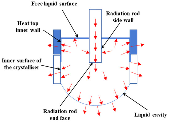 - Radiation rod side wall. Here, is considered a hard boundary surface. When acoustic energy is transmitted from the source to this interface, it is assumed that all sound energy is reflected back into the aluminium melt, with the fluid at the interface being in a compressed state.