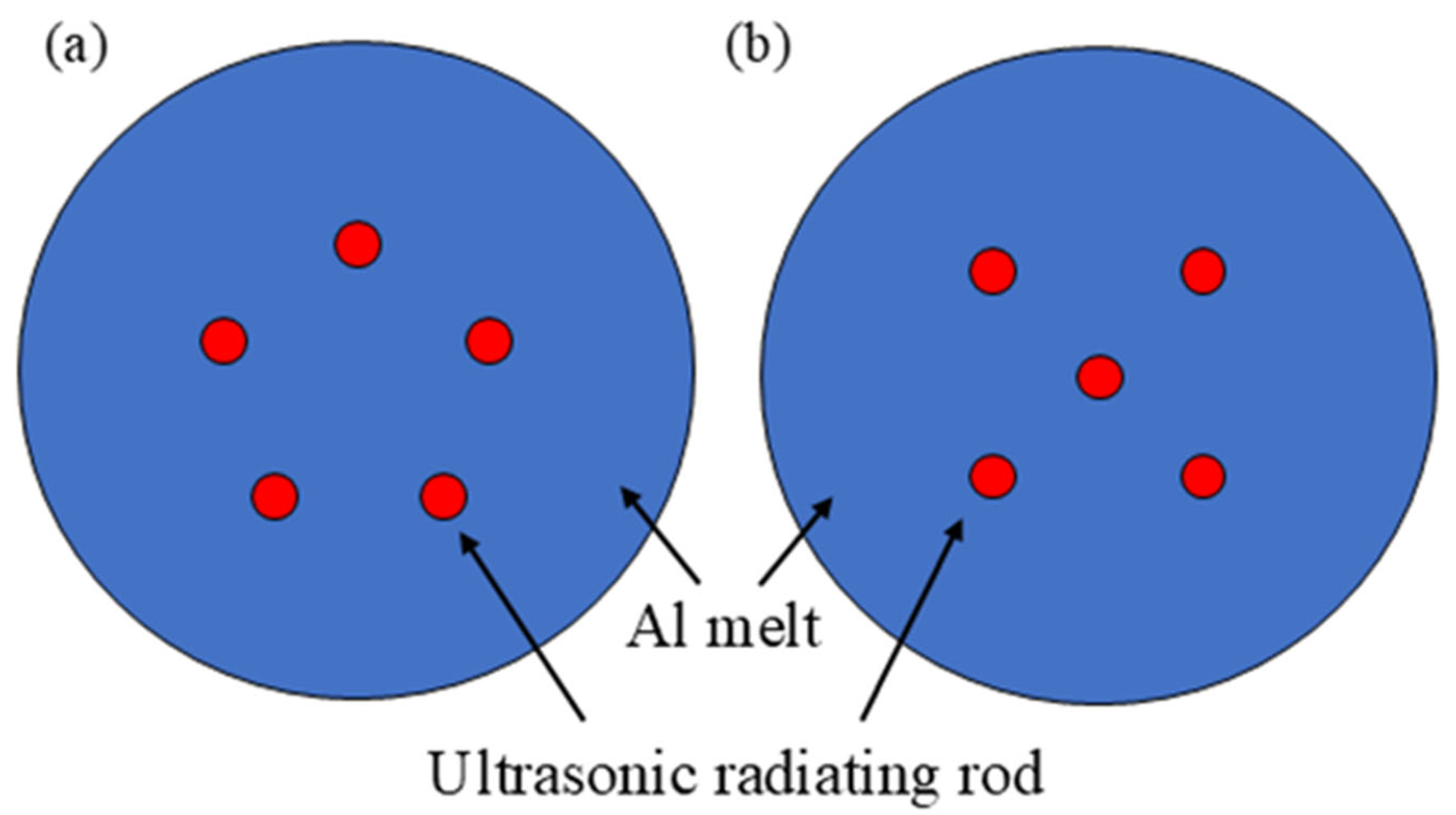 - Yang, S.; Weng, Y.; Zhao, Q.; Wu, G.; Deng, Z.; Qin, L. Ultrasonic Melt Processing: Progress, Applications, and Future Directions. Materials 2025, 18, 522. [Google Scholar] [CrossRef]