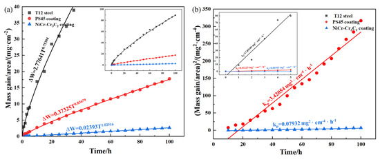 - After 100 h of corrosion at 750 °C, the NiCr–Cr3C2 coating showed the lowest mass gain (2.7 mg/cm2): only 3.02% of the substrate and 15.17% of the PS45 coating. Its excellent corrosion resistance originated from the formation of a protective Cr2O3/NiCr2O4 layer via the basic fluxing mechanism, further enhanced by the high Cr content through selective oxidation, which effectively inhibited corrosive penetration.