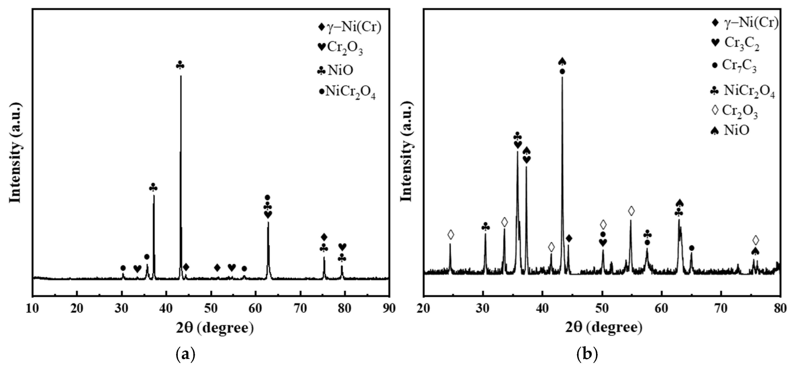 - Ding, Y.; Hussain, T.; Mccartney, D.G. High-temperature oxidation of HVOF thermally sprayed NiCr–Cr3C2 coatings: Micro-structure and kinetics. J. Mater. Sci. 2015, 50, 6808–6821. [Google Scholar] [CrossRef]