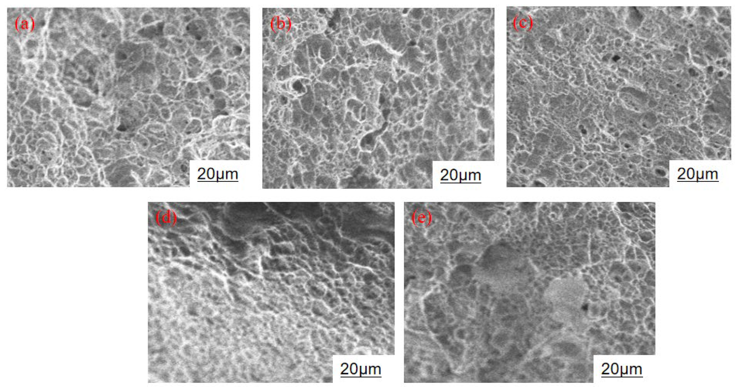 - Meng, L.X.; Li, W.Q.; Zhang, Q.F.; Zheng, L.; Shi, Q.; Ma, J.; Liang, W.; Lu, H. Deformation behavior and fracture mechanisms of 430 ferritic stainless steel after dual-phase zone annealing via quasi in-situ tensile testing. Mater. Sci. Eng. A-Struct. Mater. Prop. Microstruct. Process. 2025, 920, 147561. [Google Scholar] [CrossRef]