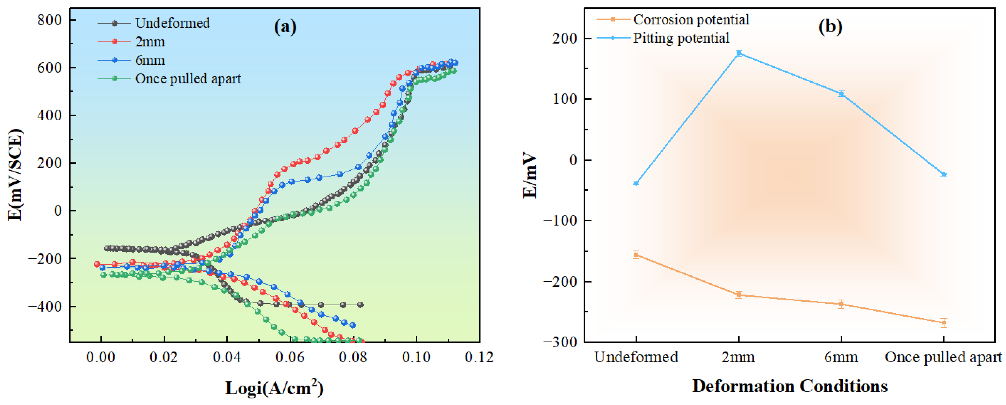- Ye, W.H.; Liu, P.R.; Li, D.I.; Xu, L.; Qiao, L. Effect of tensile elastic stress on the electrochemical passivation behaviour of cold-rolled 2205 duplex stainless steel. Corros. Sci. 2025, 248, 112794. [Google Scholar] [CrossRef]