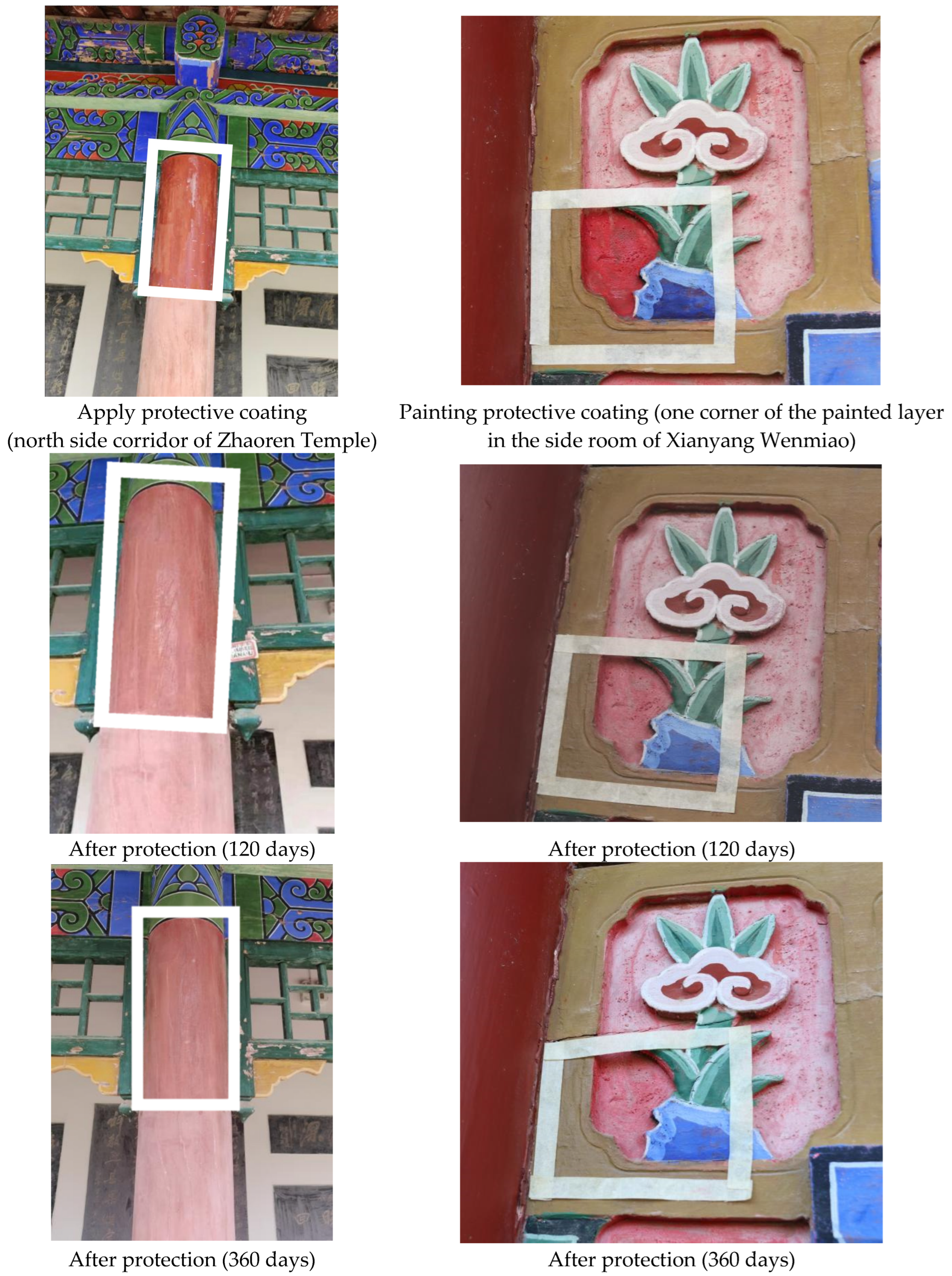 3.3. Conservation Experiment of Paintings in Changwu Zhaoren Temple and Xianyang Confucian Temple