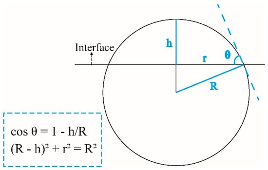 Schematic diagram for the calculation of droplet contact angle.