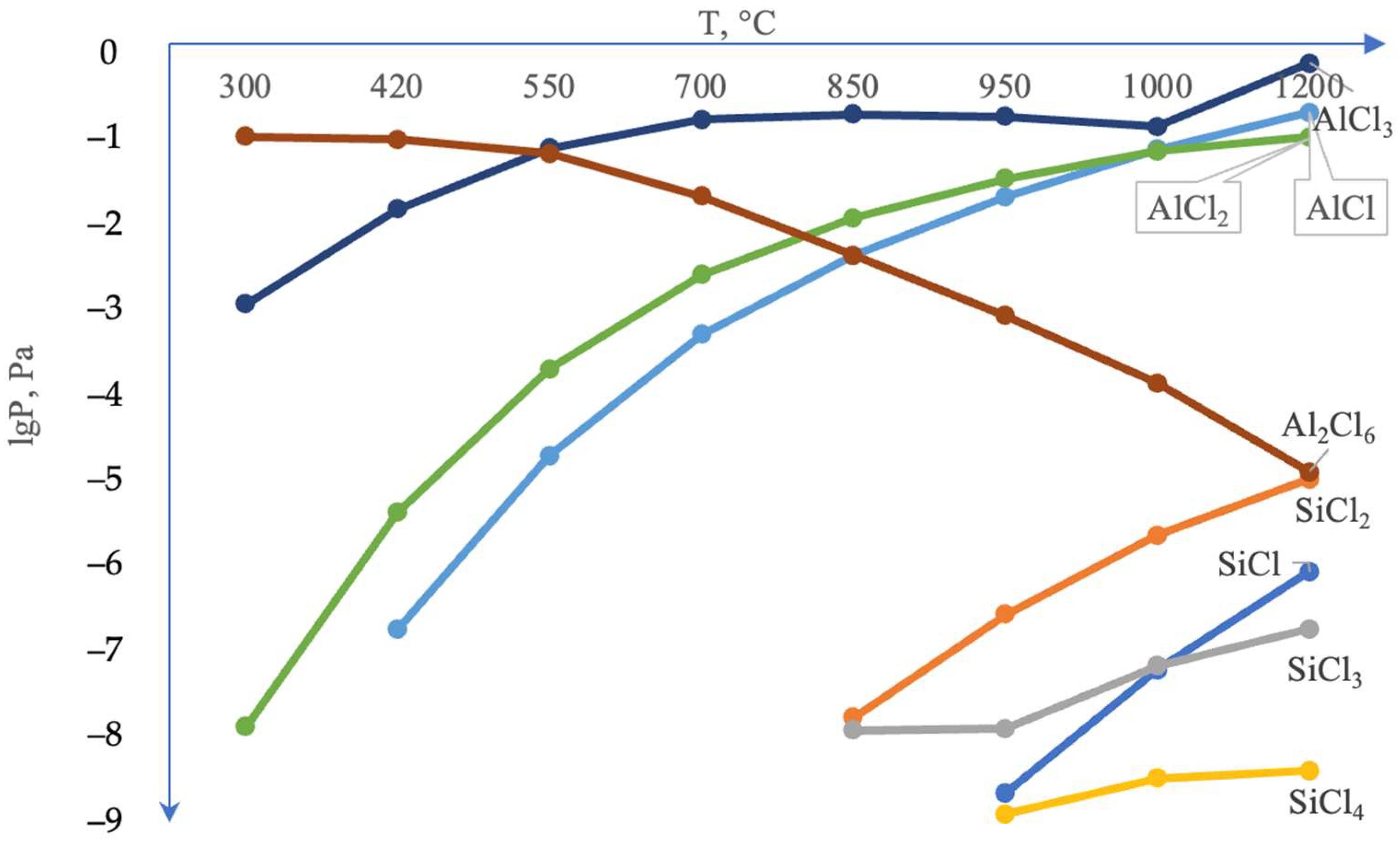 According to the thermodynamic calculations, the formation of aluminum oxides is the most thermodynamically probable (