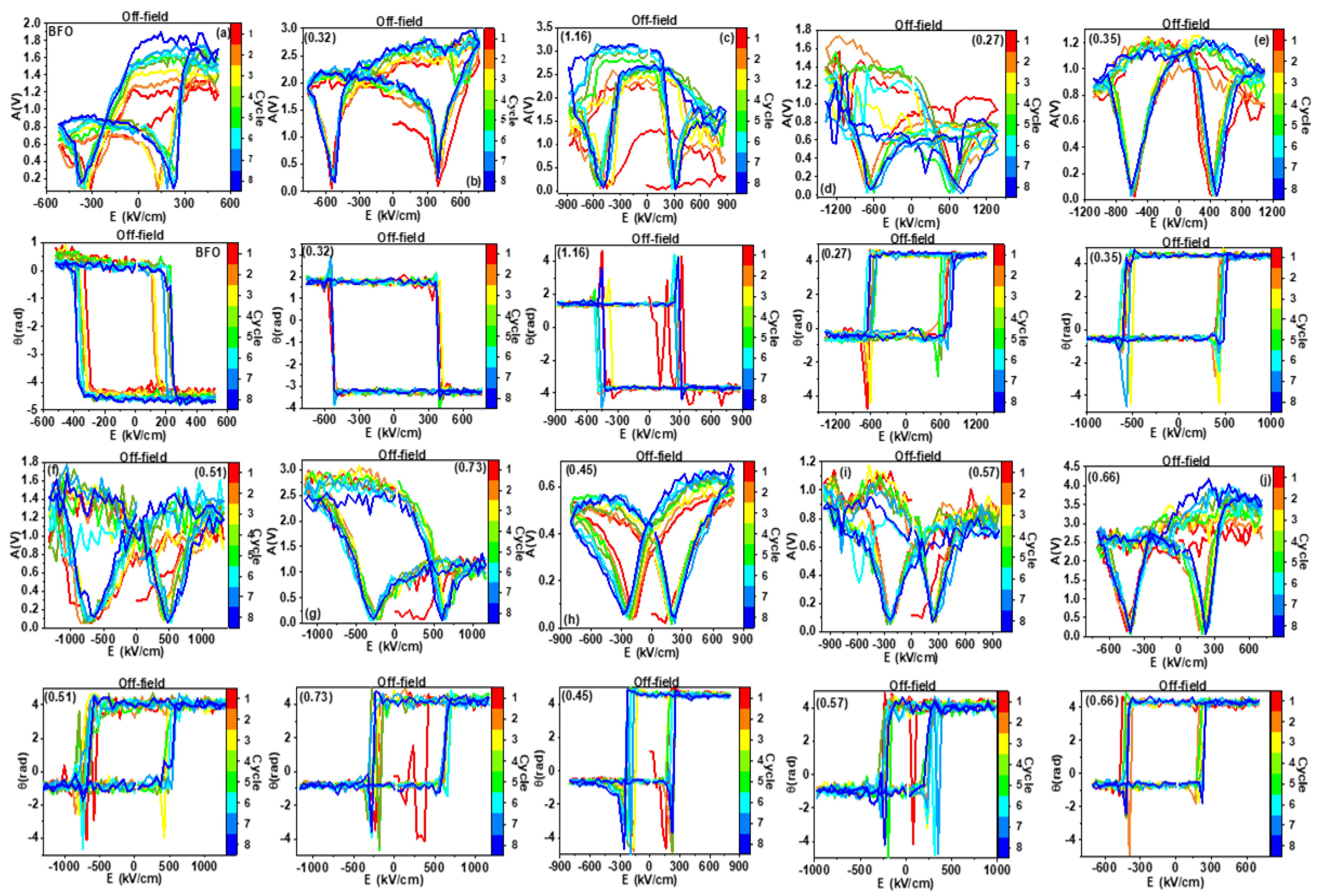 35. Garduño-Medina, A.; Flores-Ruiz, F.J.; Camps, E.; García-Zaldívar, O.; Pérez-Rodríguez, F. Coercive field modified via partial ion substitution, mechanical load and charge injection in (Ba, Ta, Cr) doped BiFeO3 films. Ceram. Int. 2023, 49, 31046–31056. [Google Scholar] [CrossRef]