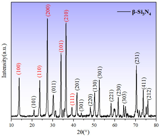 In the theoretical study, the surface energy is the energy consumed in order to destroy the chemical bonds between molecules on the surface of the material. Therefore, the surface energy is an index to measure the surface stability. The smaller the surface energy, the better the surface stability. Because the surface formed by the core–shell structure must be the most active surface of the β-Si3N4 crystal, the surface with the largest surface energy was obtained by calculating and comparing the surface energy of different crystal planes of the β-Si3N4 crystal to determine the most active surface of the β-Si3N4 crystal. Combined with the results of the actual test (shown in Figure 2), three low Miller index surfaces (100), (110) and (111) were selected in this study. The active surface of the β-Si3N4 crystal was found by calculating the surface energy of the above surfaces.