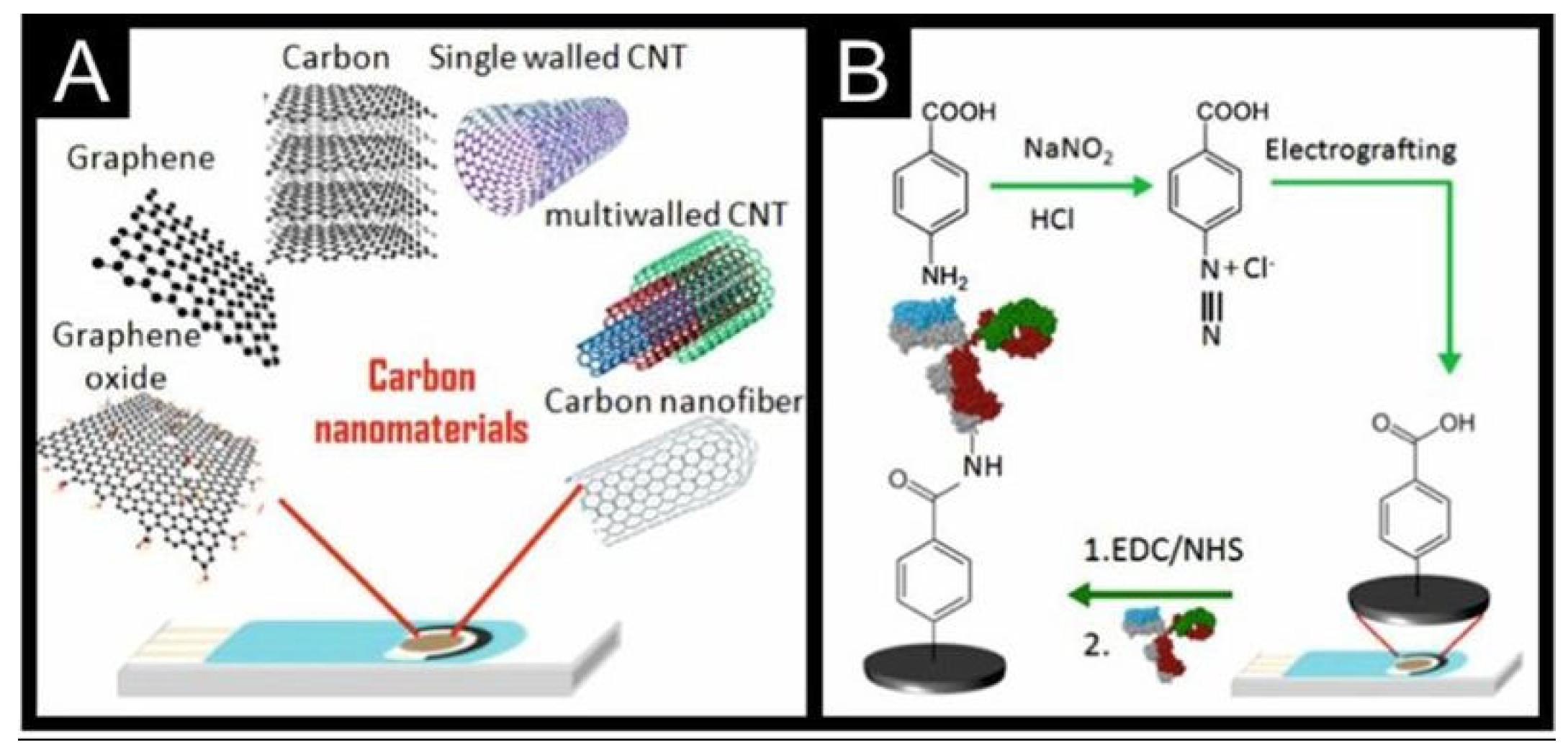 - Power, A.C.; Gorey, B.; Chandra, S.; Chapman, J. Carbon nanomaterials and their application to electrochemical sensors: A review. Nanotechnol. Rev. 2018, 7, 19–41. [Google Scholar] [CrossRef]