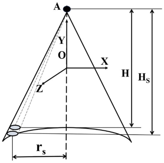 To determine the coating thickness distribution over a tangential infinitesimal surface element of the curved surface, a dual-coordinate transformation based on the same spray angle must be employed. This method leverages the spatial geometric relationships among circular regions at different cross-sections under conical spraying conditions. Consequently, the cumulative deposition rate on the surface at radius can be expressed as: