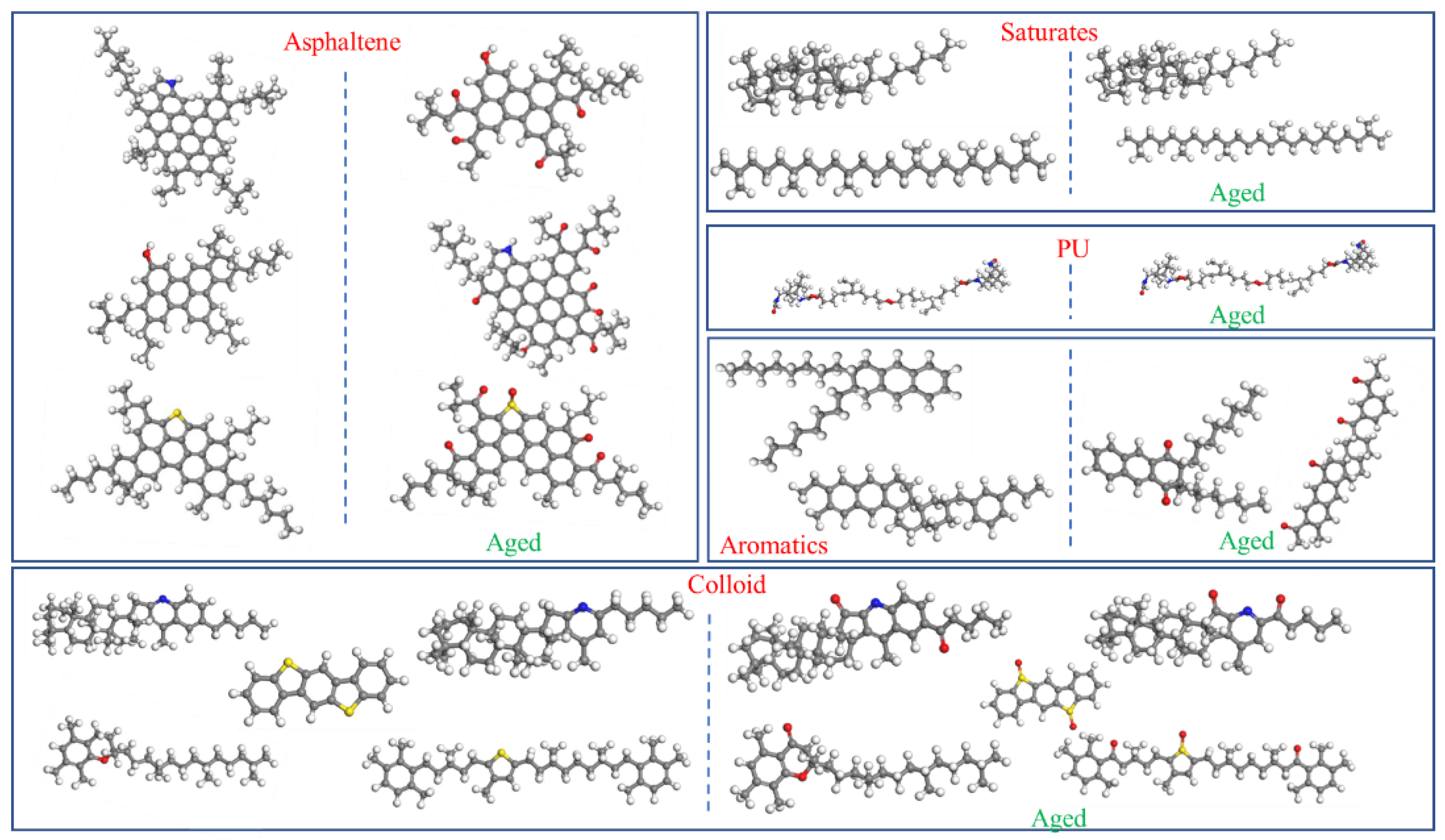 Component | Molecule | Virgin | RTFOT | UV | PAV | ||||