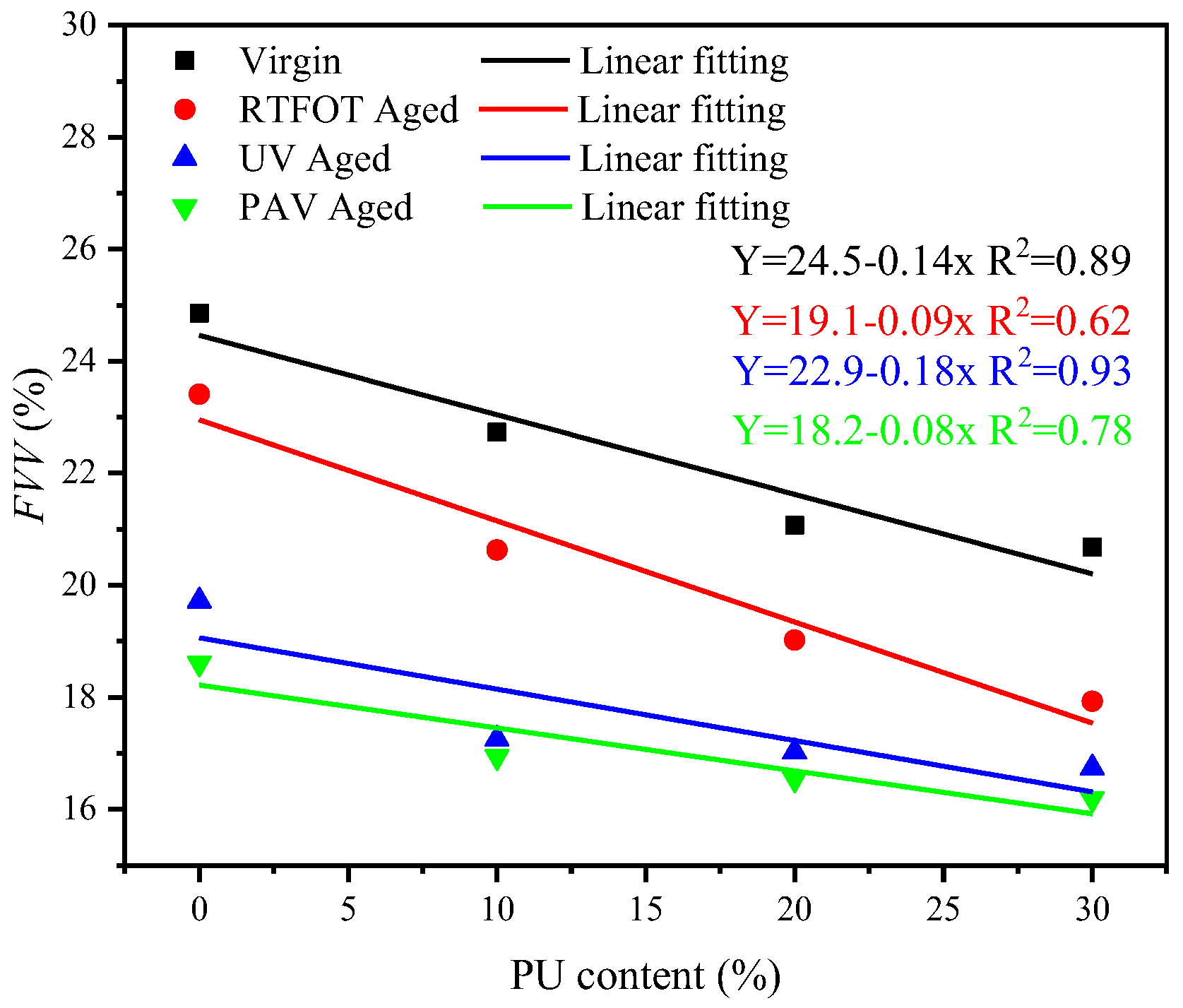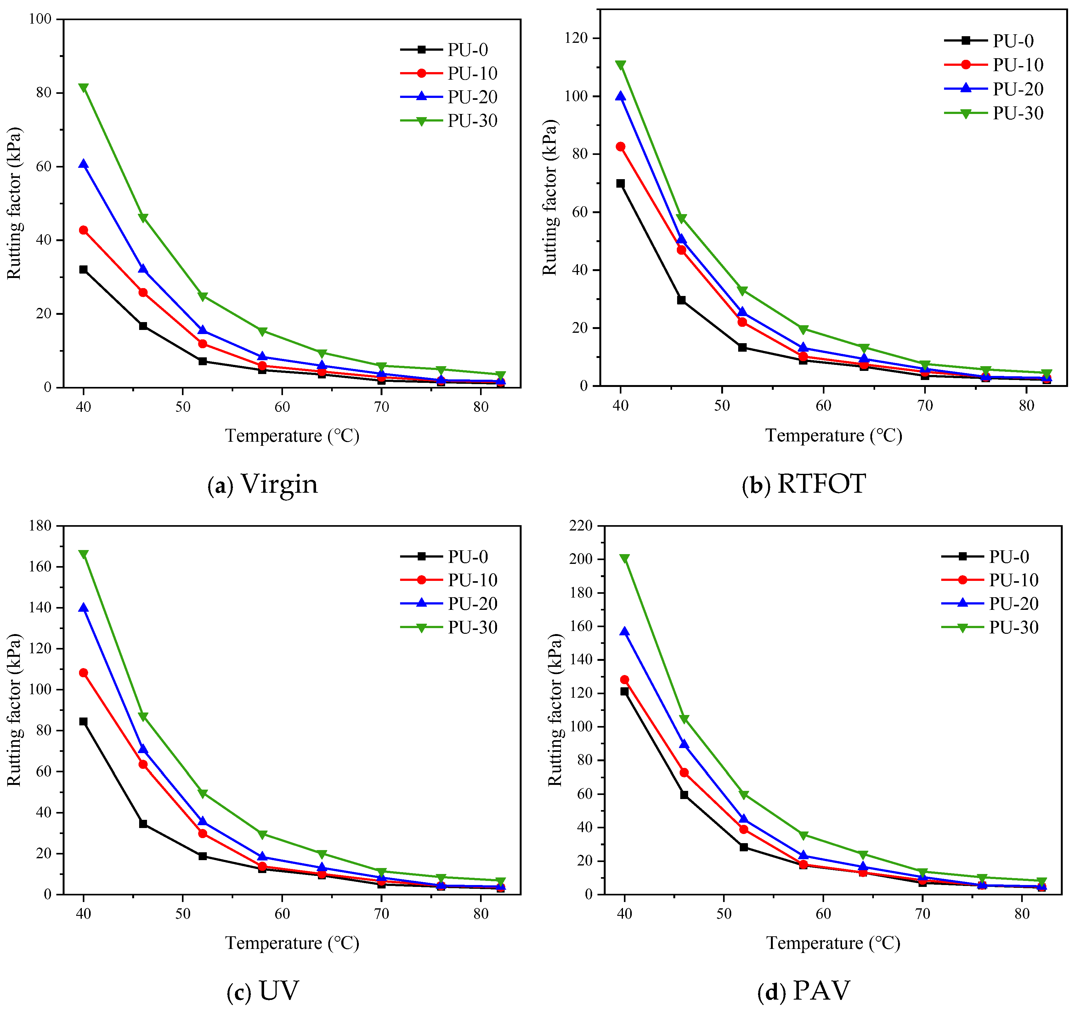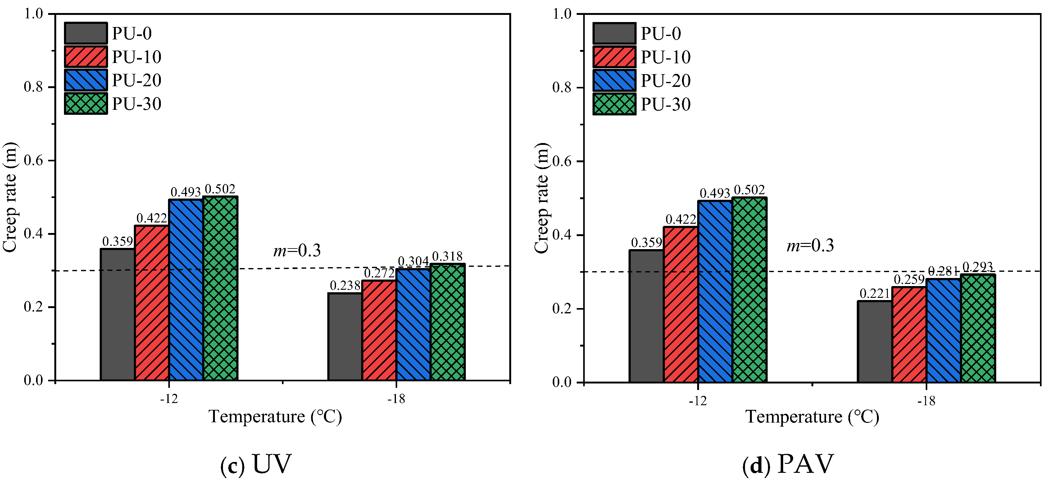 - Zhang, M.; Xiong, K.; Zhang, J.; Li, Y.; He, Y.; Pei, J. Evaluation of the rheological properties and aging resistance of asphalt modified by MDI/TDI polyurethane. Constr. Build. Mater. 2024, 411, 134350. [Google Scholar] [CrossRef]