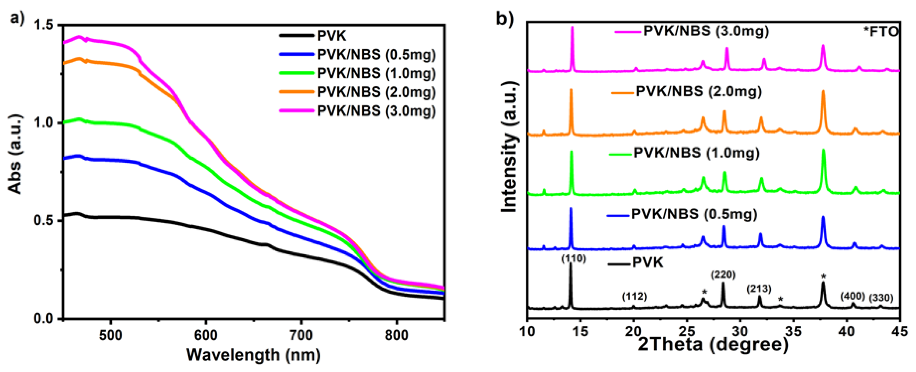 - Zhang, Y.; Wang, Y.; Ma, Y.; Liu, R.; Li, L.; Zhang, N.; Xing, Z.; Mao, X.; Xi, X.; Wang, P.; et al. Introduction of N-hydroxy succinimide to improve overall efficiency and stability of perovskite solar cells. Appl. Surf. Sci. 2025, 163916. [Google Scholar] [CrossRef]
