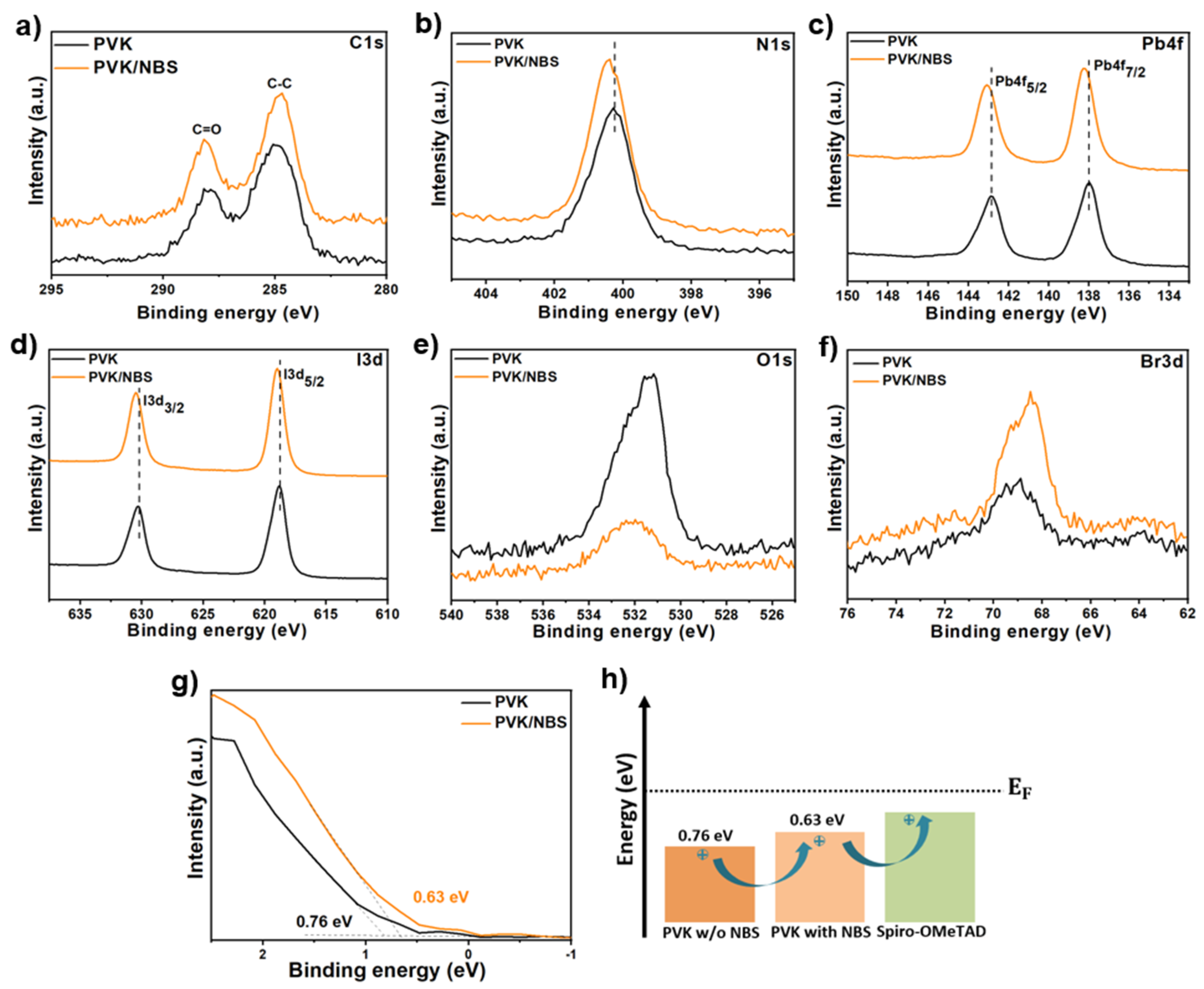 - Pan, S.; Yang, X.; Cai, B.; Yang, K.; Ge, M.; Zhang, T.; Cui, H.; Sunab, L.; Ji, W. N-Bromosuccinimide as a p-type dopant for a Spiro-OMeTAD hole transport material to enhance the performance of perovskite solar cells. Sustain. Energy Fuels 2021, 5, 2294–2300. [Google Scholar] [CrossRef]