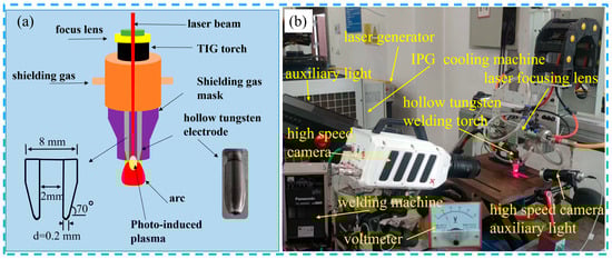 - Cai, D.; Luo, Z.; Han, S.; Xue, Y.; Chen, C.; Zhang, Y. Plasma characteristics of a novel coaxial laser-plasma hybrid welding of Ti alloy. Opt. Lasers Eng. 2023, 167, 107599. [Google Scholar] [CrossRef]