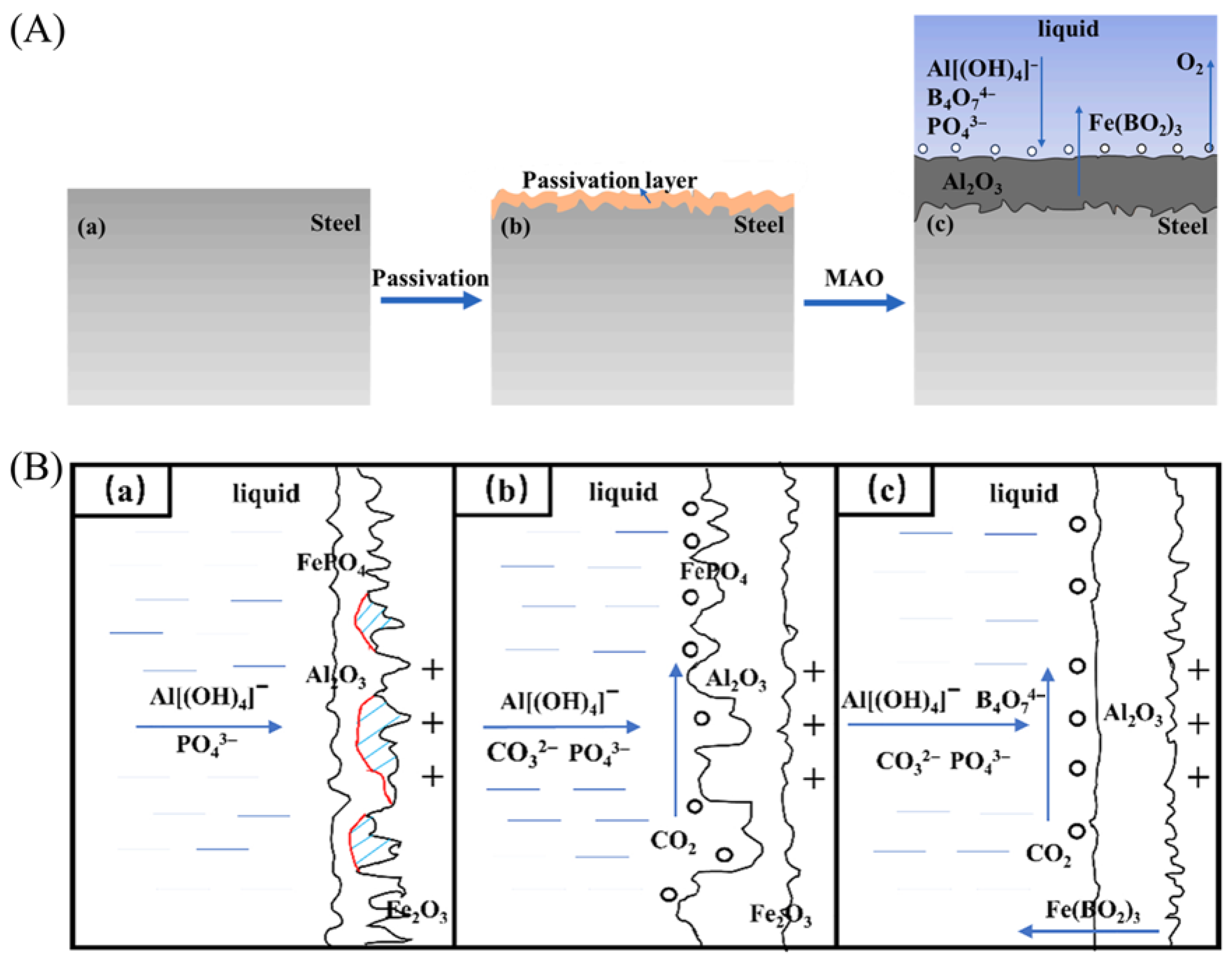 - Sun, S.C.; Cheng, B.; Liu, A.; Liu, Z.H.; Xu, G.M.; Liu, P.; Lu, H.L. Research on micro-arc oxidation method based on passivation layer on non-valve metal low-carbon steel surface. Tribol. Int. 2024, 200, 110114. [Google Scholar] [CrossRef]