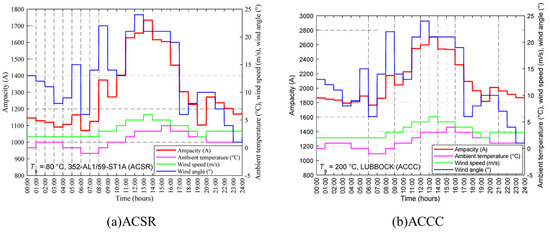 The 24 h ampacity variation curves of ACSR conductors and ACCR conductors, adapted from [111].