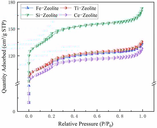 Nitrogen adsorption–desorption BET loops of four zeolites.