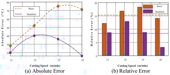 Model reliability was assessed using two error metrics: absolute error and relative error. The predictive performances of the conventional and modified heat-transfer coefficient models were evaluated through a systematic comparison with experimental data under varying cutting conditions.